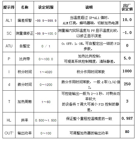 上圖為(鼓風(fēng)干燥箱各項(xiàng)功能參數(shù)一覽表)