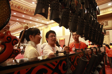 中國臺灣網7月12日消息 今天下午,兩岸萬名青年大型交流主題聯(lián)歡活在人民大會堂盛大舉行,將此次兩岸青年交流活動推向最高潮。 此次活動以“兩岸同心、我們同行”為主題,由17家單位聯(lián)合舉辦,兩岸眾多青年學子齊聚一堂共襄盛舉。海峽兩岸的廣大青年學子滿懷七月驕陽般的熱情,參觀了人民大會堂,觀看了中華非物質文化遺產展示并與現場操作人員進行互動,漢字篆刻、提線木偶、唐卡、編鐘等飽含中國元素的傳統(tǒng)文化讓兩岸青年學子們驚嘆不已。 參觀結束后,一場精彩驚艷的大型文藝聯(lián)歡活動在萬人大禮堂舉行。聯(lián)歡活動由來自大陸央視和臺灣東森電視臺的主持人共同主持,光彩艷麗的唐宋元明清服飾、美輪美奐的千手觀音、神奇莫測的劉謙魔術,別具特色的臺灣原住民舞蹈,讓廣大青年大飽眼福;大陸和臺灣青年歌手聯(lián)袂演出且以閩南語發(fā)聲讓臺灣青年們倍覺親切,雖處異鄉(xiāng)猶感在家;周杰倫、林宥嘉、成龍、韓紅、宋祖英、姚明、王楠、林丹等兩岸明星大腕的加盟出演,更把現場氣氛推向高潮,雷鳴般的掌聲和吶喊聲此起彼伏。 兩岸廣大青年紛紛表示,通過今天下午的活動,對博大精深的中華文化感受頗深,兩岸文化同文同種,兩岸同胞心手相連,今后一定努力為兩岸和平交流多做貢獻. |